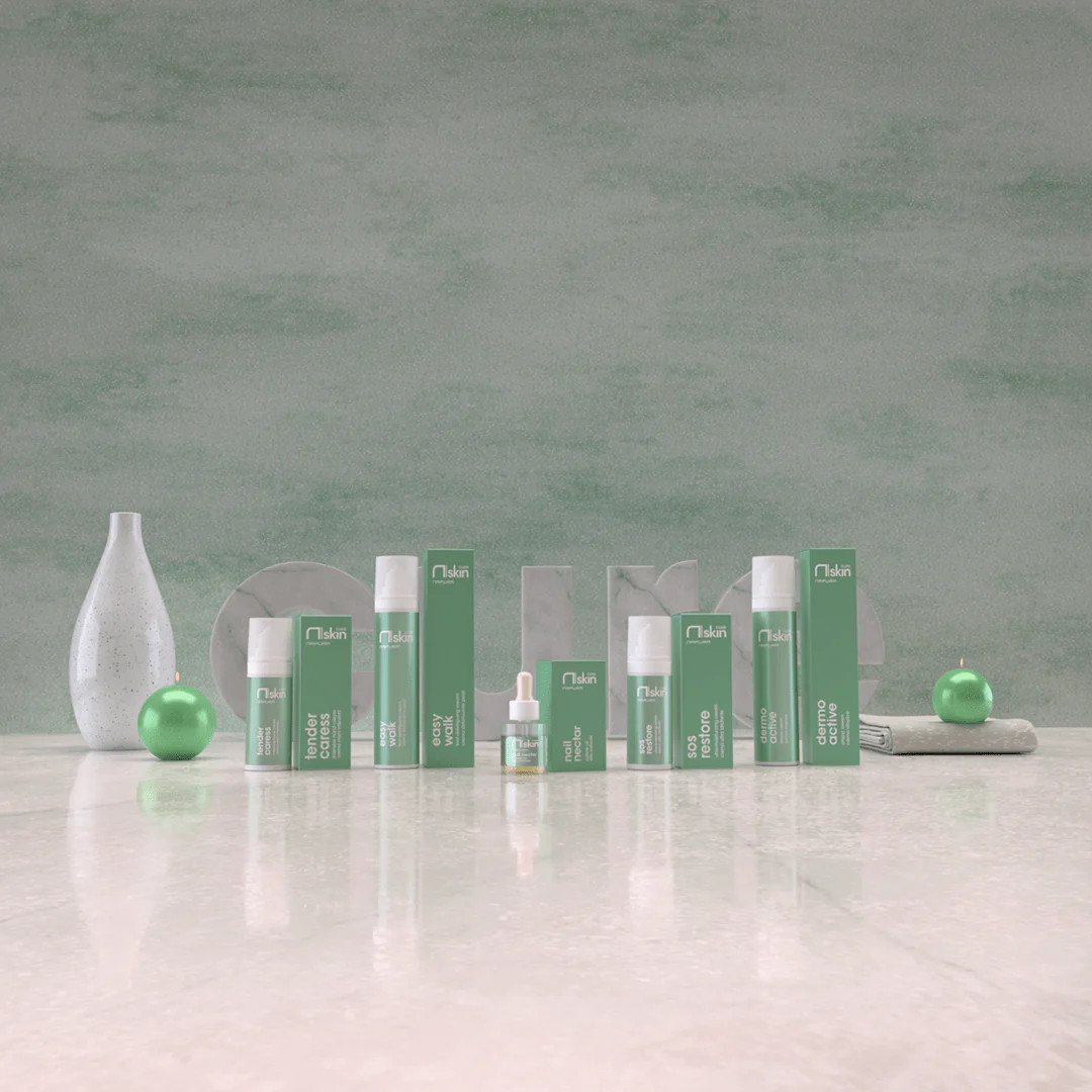 Fórmula enriquecida con una mezcla de activos naturales con acción refrescante y calmante, entre los que se incluyen aceites esenciales de menta, árbol del té, eucalipto, palmarosa, limón y pomelo, extractos de albahaca, manzanilla y caléndula, mentol, aceites de semillas de uva y girasol y glicerol vegetal, para proporcionar un alivio inmediato y una hidratación profunda.